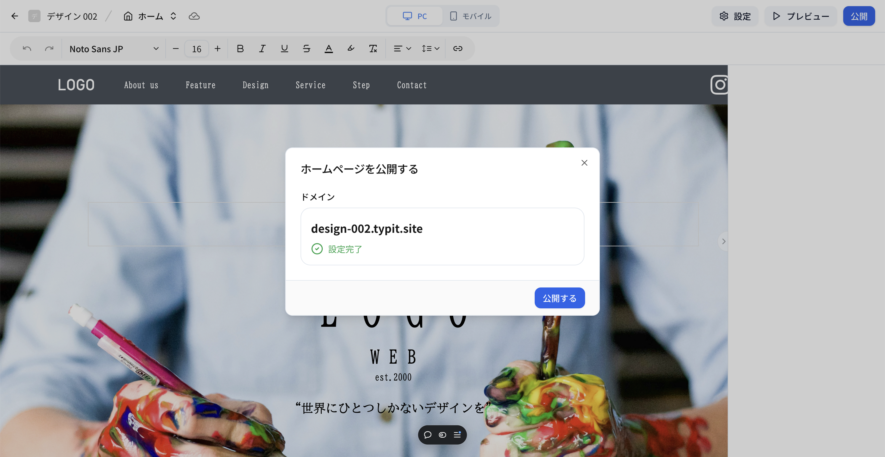 プランの選択とドメインの設定が完了したら公開しましょう!